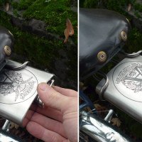 There have been six-pack holsters and wine bottle carriers for your bicycle for a while now, but if your drink of choice happens to be something a little stiffer, your time has come. This seat-mounted flask carrier lets you tote around some of the good stuff with ease when you’re on your fixie. The unit is a tubular stainless steel cage with an aluminum bar that secures your precious beverage on the go and will work with standard 6 oz. and 8 oz. flasks. Just go easy on the high-octane stuff or the ride home won’t be pretty.
