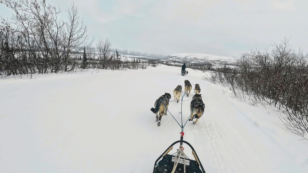 The next day, Drobny got her team together to leave for the Iditarod. The dogs were clearly excited to run, with calls and howls that sound like they are saying, “pick me.” That the dogs live to run as a team was clear from even my baby-sized 55-mile run with five dogs. Before she left, I had a chance to get behind Drobny’s team of 15 dogs for a short distance. I can confirm that their powerful synchronized teamwork is magical.