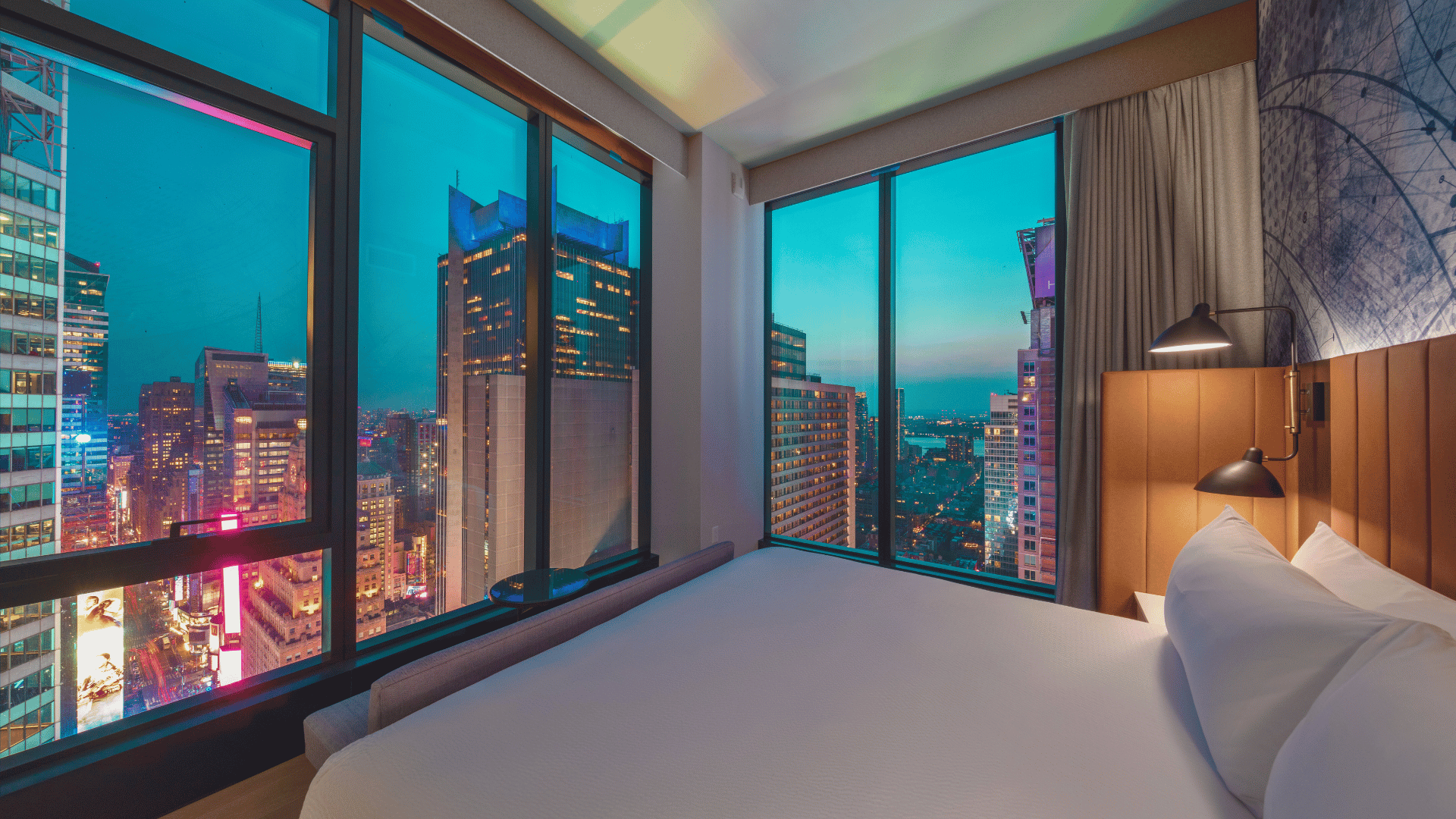 Tempo by Hilton Times Square boasts impeccable service, sleek design, and views as intoxicating as the jet-fuel martinis from the lobby bar. In urbane suites, beds lie next to floor-to-ceiling windows that frame forests of skyscrapers, Central Park, and the Hudson River. All the chemists at Pfizer could not engineer a more potent aphrodisiac.