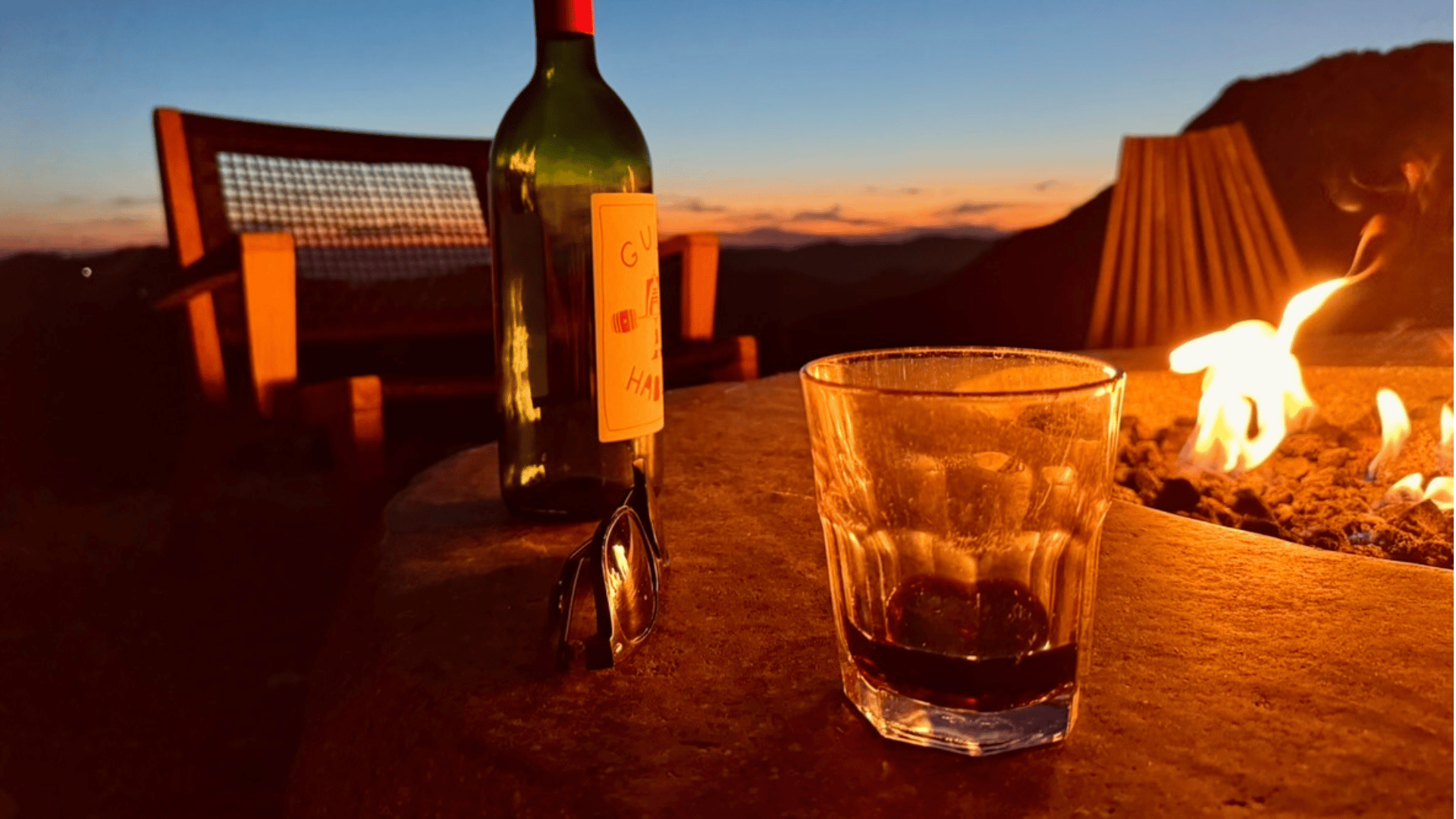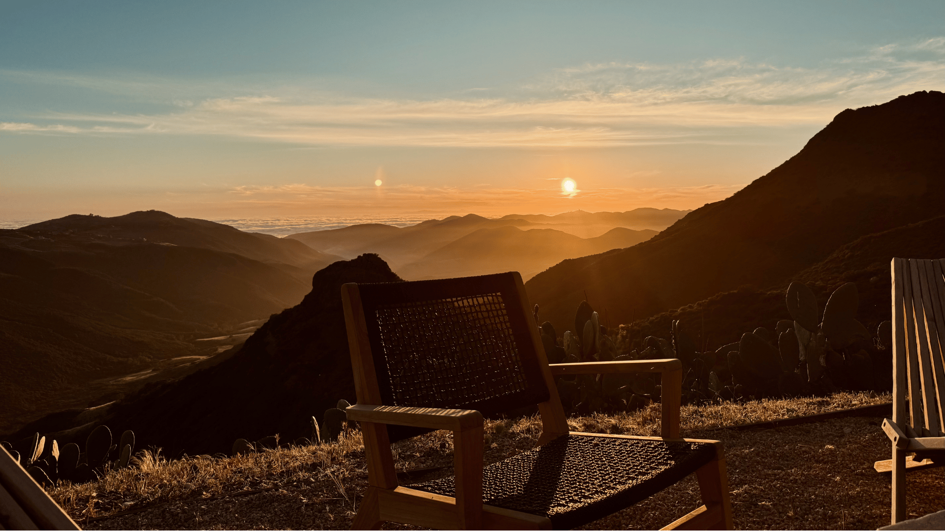 We ate outside as the sun started its slow descent, dissolving into layers of cloud and mountain and ocean. The kind of sunset that doesn’t feel real until you’ve been sitting in it for a while.