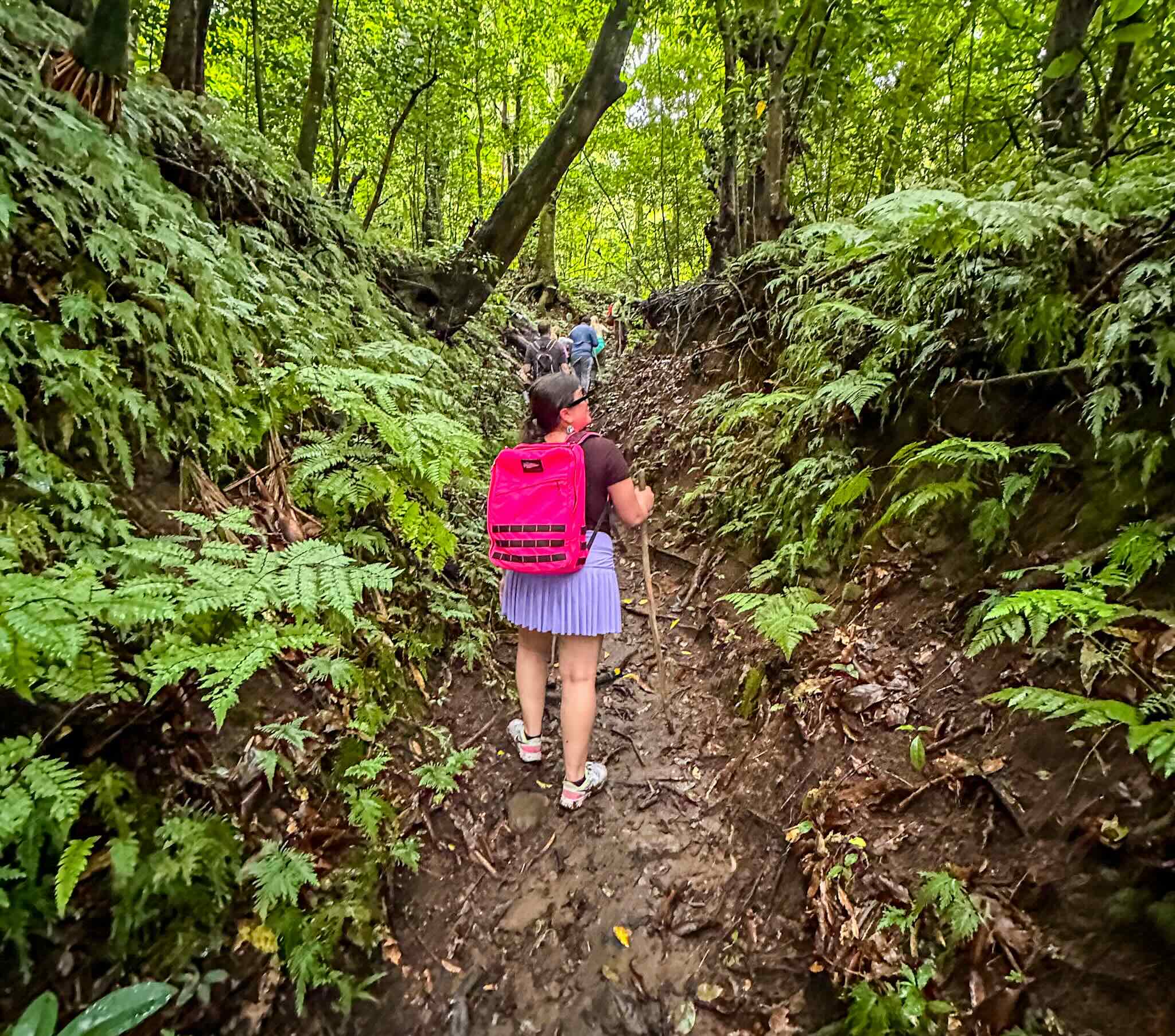 I can speak from personal experience that O’Neil nearly saved my life. On the trek down, sudden rain made for unsafe conditions on the muddy trails fairly quickly. I slipped and ended up with a nasty quadriceps contusion, but O’Neil patiently helped me down the mountain while cracking jokes, making what would have been a pretty horrid experience into a fun memory, injury aside. I’d avoid this hike if there’s even a small chance of rain, but otherwise, be prepared to break a serious sweat.