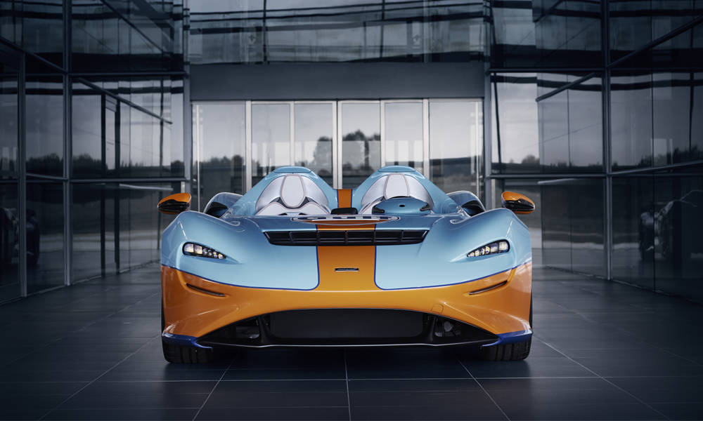 The orange and baby blue Gulf Oil livery might just be the most famous racing colorway of all time, followed by the likes of Martini Racing, John Player Special, Alitalia, and Rothman’s. This time, the Gulf livery shows up on the radical McLaren Elva open-top supercar. Although the specs and performance of the Elva go unchanged, the livery brings the look of the legendary Porsche 917 Gulf Livery to an ultra-modern supercar, as well as celebrating a relationship between Gulf and McLaren that started in the 1960s. The Elva is a limited-production member of the McLaren Ultimate Series. Its power comes from a mid-mounted 840-hp twin-turbo V8 that rockets the Elva to 60 mph in under three seconds and to 124 mph in a mere 6.7 seconds. This specially-painted takes center stage at Goodwood SpeedWeek.