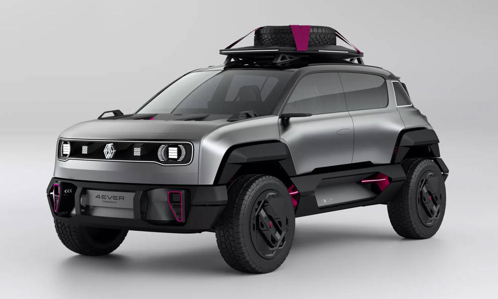 When Renault sold cars in America in the ’80s, we got insipid models like the LeCar and the Fuego. Too bad we can’t have this one. The new 4EVER Trophy celebrates the 25th anniversary of the 4L Trophy humanitarian rally. It takes the upcoming Renault 4 four-door hatch and makes it off-road ready with Dakar Rally influences. The gunmetal silver car gets magenta accents all around. The 4EVER Trophy also receives a serious lift to a clearance height of almost eight inches, rugged body trim, huge fenders, 19″ wheels with built-in air compressors, tie downs, and an LED-illuminated roof rack. There are even recovery boards and a shovel in back. It might not be a production vehicle, but we could see Renault using it as inspiration to create a compact crossover that’s ready for the rough stuff.