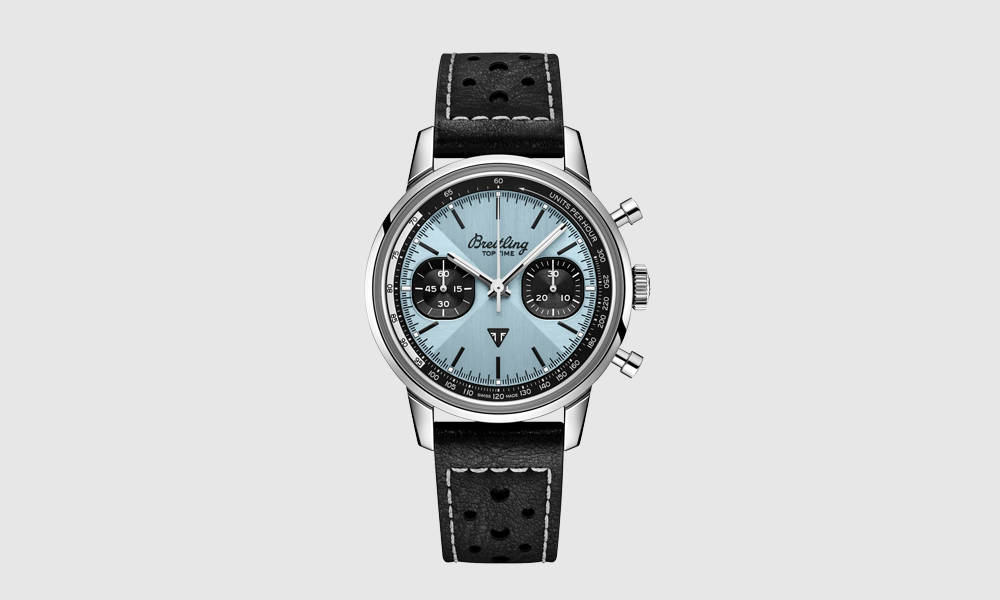 Breitling’s Top Time series is one of its more interesting and colorful offerings, and their latest version comes by way of Triumph Motorcycles, namely its matching Speed Twin Breitling Limited Edition 1200cc bike. This time around, the Top Time version is a bit more muted but nonetheless stunning. The watch draws inspiration from 1960s café-racers, and it boasts an icy blue “Zorro” brushed dial with the Top Time bow tie pattern. It draws from the archives: a blue Triumph Thunderbird 6T from 1951 and a rare ice-blue Breitling Top Time Ref. 815 from the 1970s. A Swiss mechanical automatic movement with 48 hours of power reserve manages timekeeping duties. The 41mm case is just the right size, and the black perforated rally strap is the perfect match. Breitling will make 270 limited edition versions of these that match the accompanying bike’s number. You can, of course, just buy the watch and look almost as cool.
