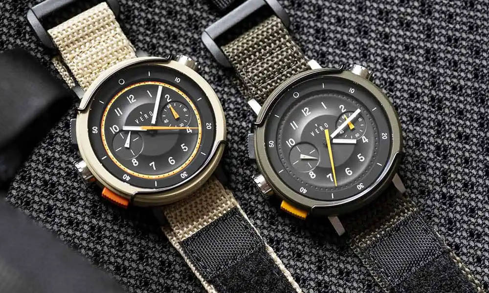 Activity or work in the field warrants a tough watch, and sometimes you want one that’s a bit more stylish and unique than a G-Shock (as much as we love G-Shocks). Relative newcomer VERO has followed up its excellent Open Water dive watch with a rugged active lifestyle watch that’s as handsome as it is tough. The Workhorse Chrono is appropriately named for its robust materials and construction including a 44.5mm case that’s ceramic coated steel (Cerakote). The dial is clean and unobtrusive, juxtaposed against wire case guards and black and orange chrono pushers. It also has two steel crowns, one for the time and the other for the internal timing bezel that’s marked off in 5-minute increments. The movement is appropriately quartz. The single-pass Nato uses synthetic leather, nylon, and Velcro for security. It comes in two versions, Canyon and Backcountry, and the pricing comes in at well under $500.